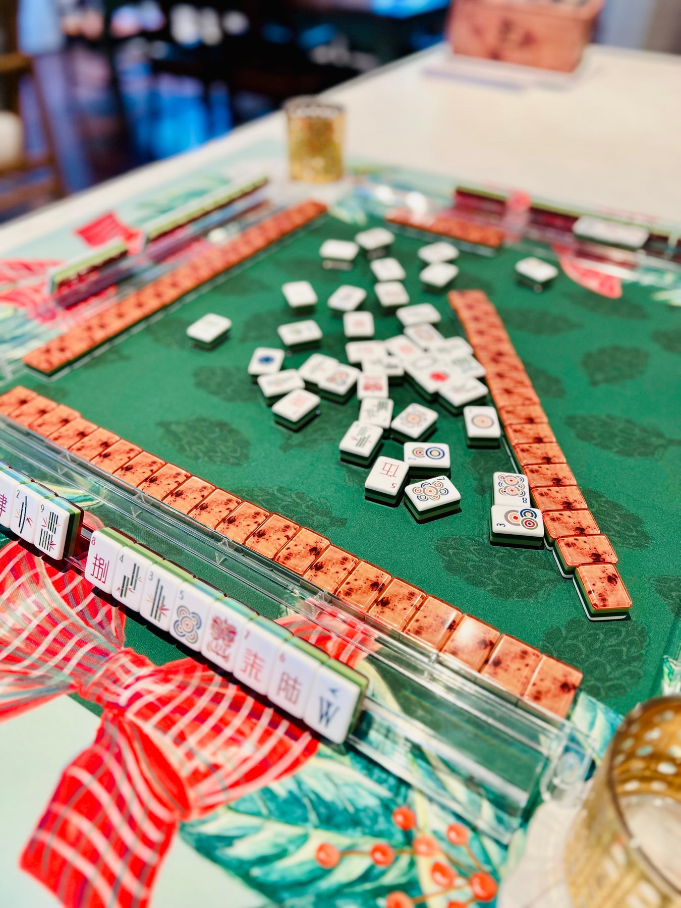 Get all the Mahjongs you can with this bespoke neoprene, full colored mat. Customized design for your favorite game.