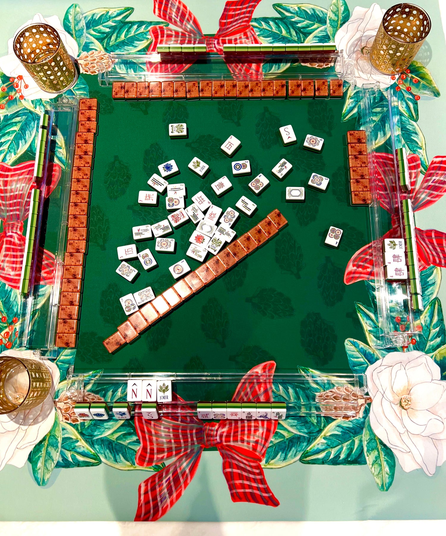 Hot cocoa, hot coffee or maybe a hot toddy? All works perfectly with the Merry Mahjong Mat. Curl up with a classic and enjoy.